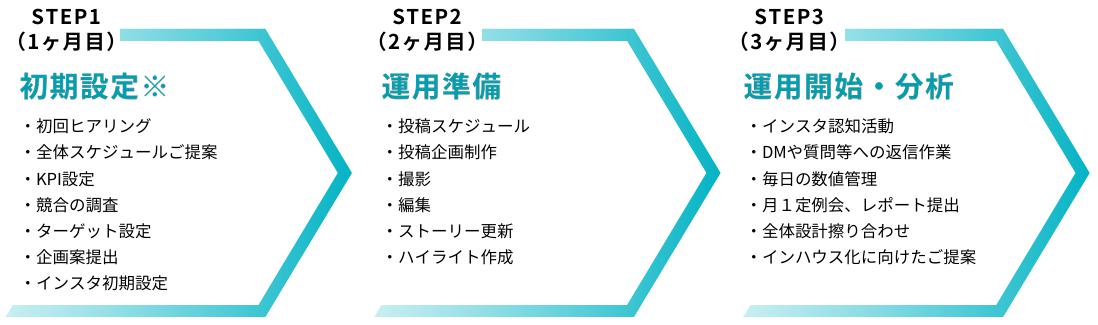 2ヶ月目には撮影・編集・投稿企画制作など運用準備を行い、3ヶ月目からは本格運用を開始します。